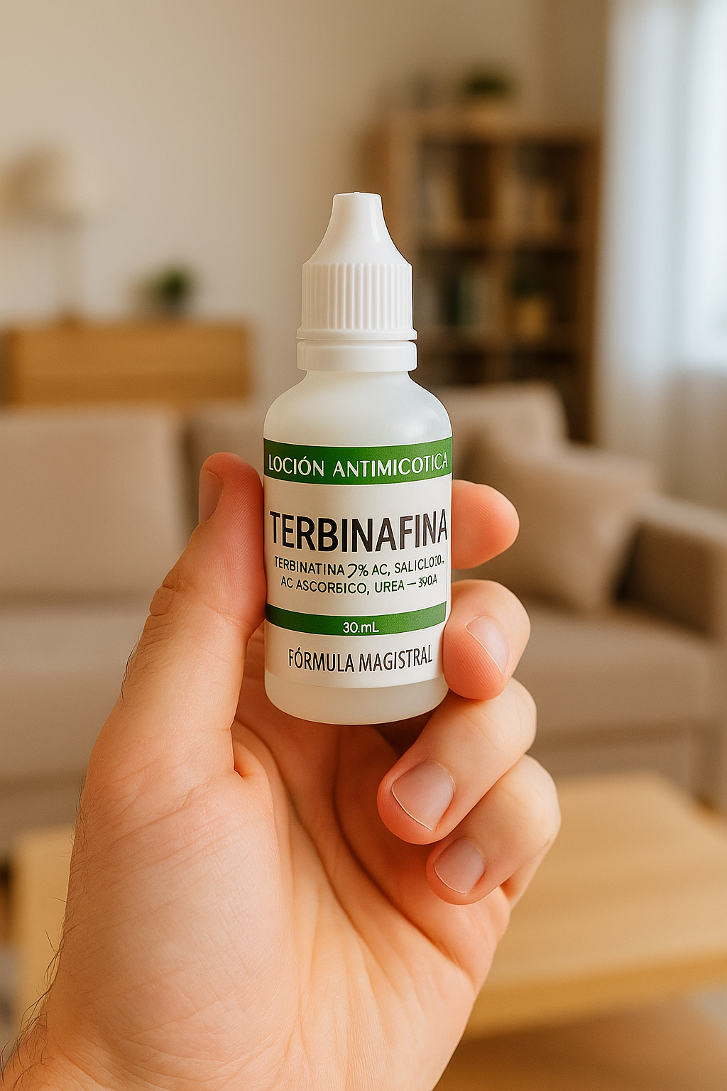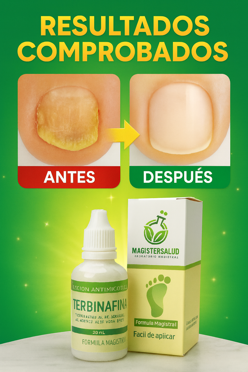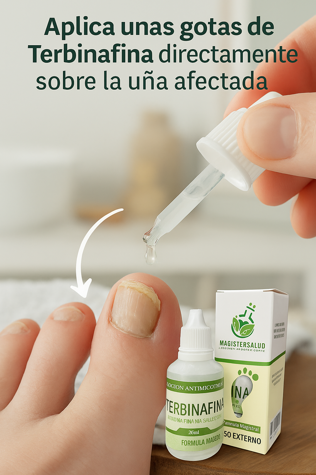 La terbinafina penetra en la uña y destruye el hongo causante, garantizando resultados reales. 🔬