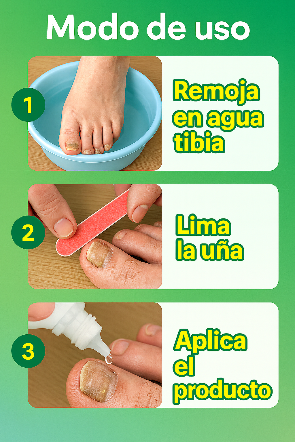 Solo remoja, lima y aplica. Un tratamiento práctico que no requiere visitas al médico. 🏠