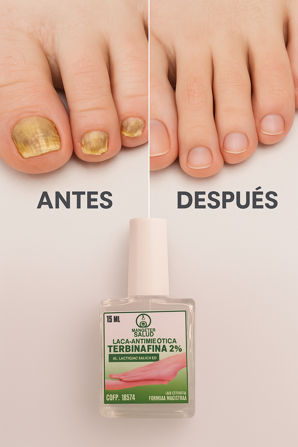 Nuestra Laca Antimicótica está diseñada para combatir eficazmente los hongos, proporcionando alivio rápido y una barrera protectora contra nuevas infecciones. Su fórmula avanzada penetra profundamente en la superficie afectada, eliminando hongos y bacterias que causan el deterioro de las uñas y molestias en la piel.